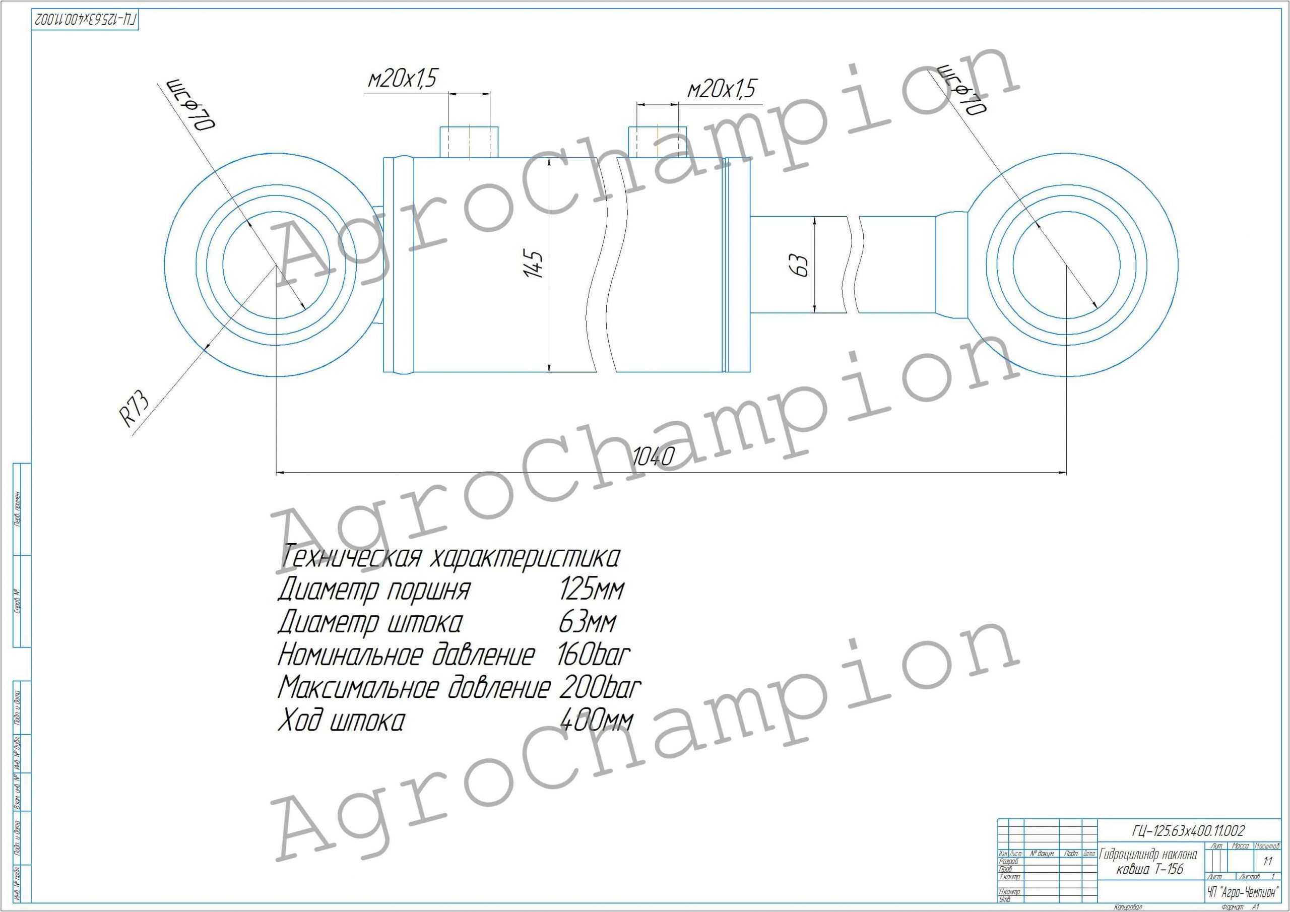 Главная страница » Магазин » Гидроцилиндр погрузчика » Гидроцилиндр погрузчика Т-156 (наклона ковша)